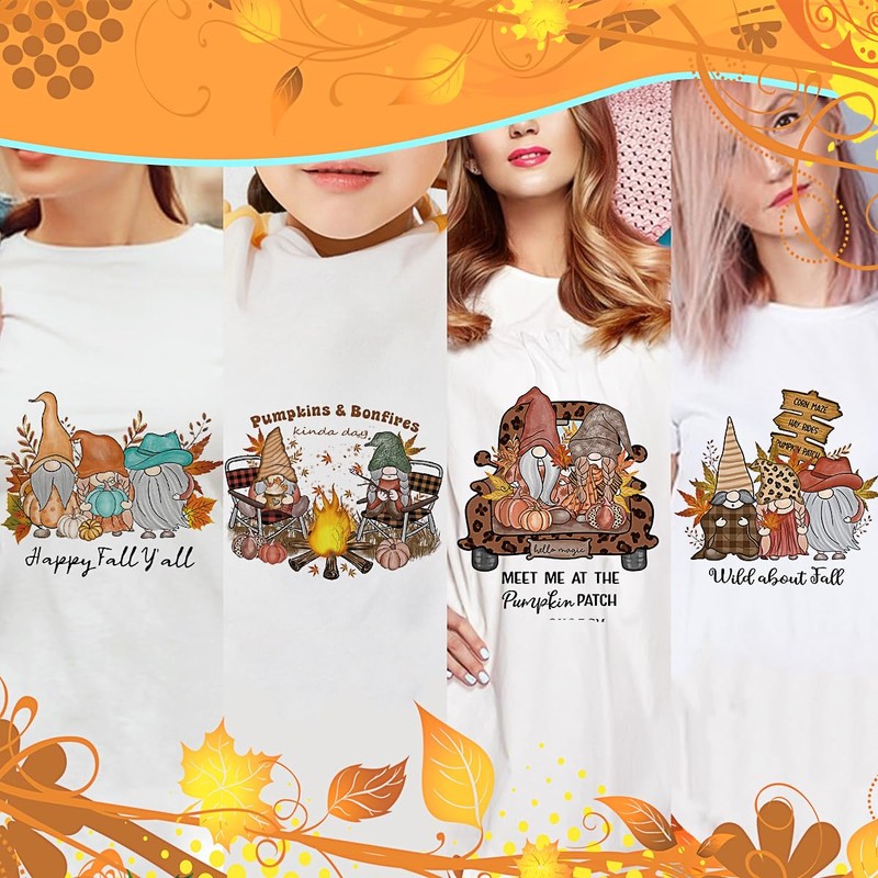 6 Sheets Fall Iron on Transfers Autumn Iron on Patches Maple Leaves Gnomes Pumpkin Design Iron on Heat Transfer Stickers Thanksgiving Vinyl Decals Appliques for Clothes T-Shirt Bag DIY Decoration