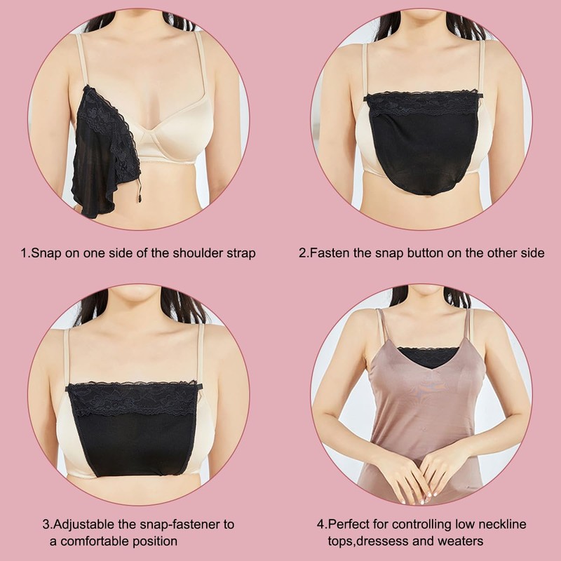 • EASY TO USE Attach or attach it to the sides of your bra straps if needed to cover your bust quickly, easily and conveniently. It only takes a few seconds to make the transition from a sexy low-cut to a layering office look. A good choice to match the neckline of low cut tops and dresses.