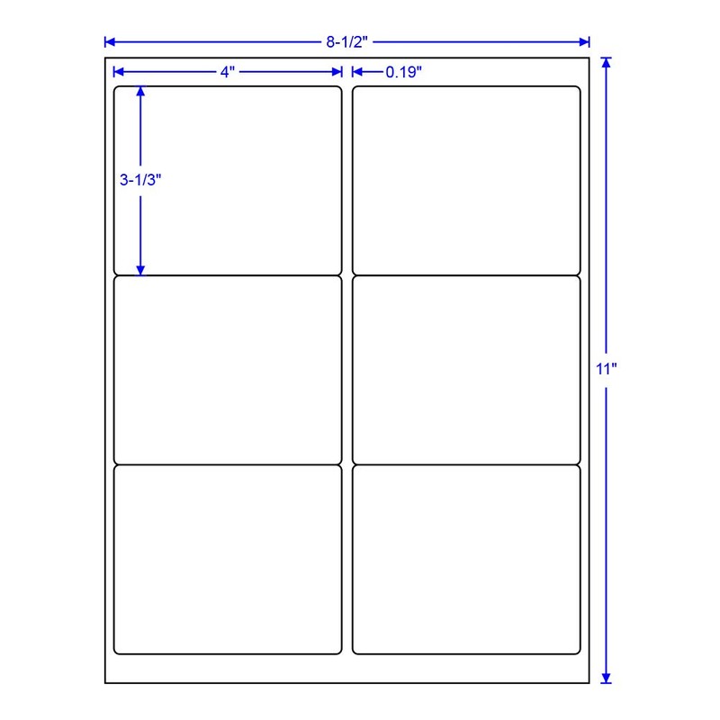 - Label size: 4" x 3-1/3" - 6 Labels on a 8-1/2 x 11".