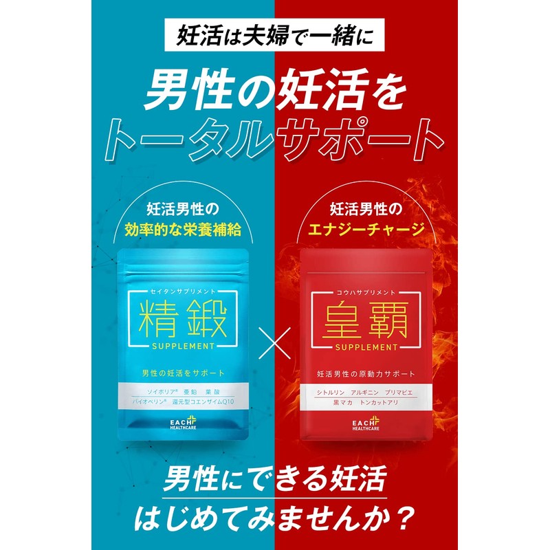 妊活サプリ 男性 妊活 をサポート精鍛皇覇サプリセット(セイタンコウハサプリセット)特許成分 亜鉛 マカ 葉酸 シトルリン アルギニン 厳選した成分をバラ...