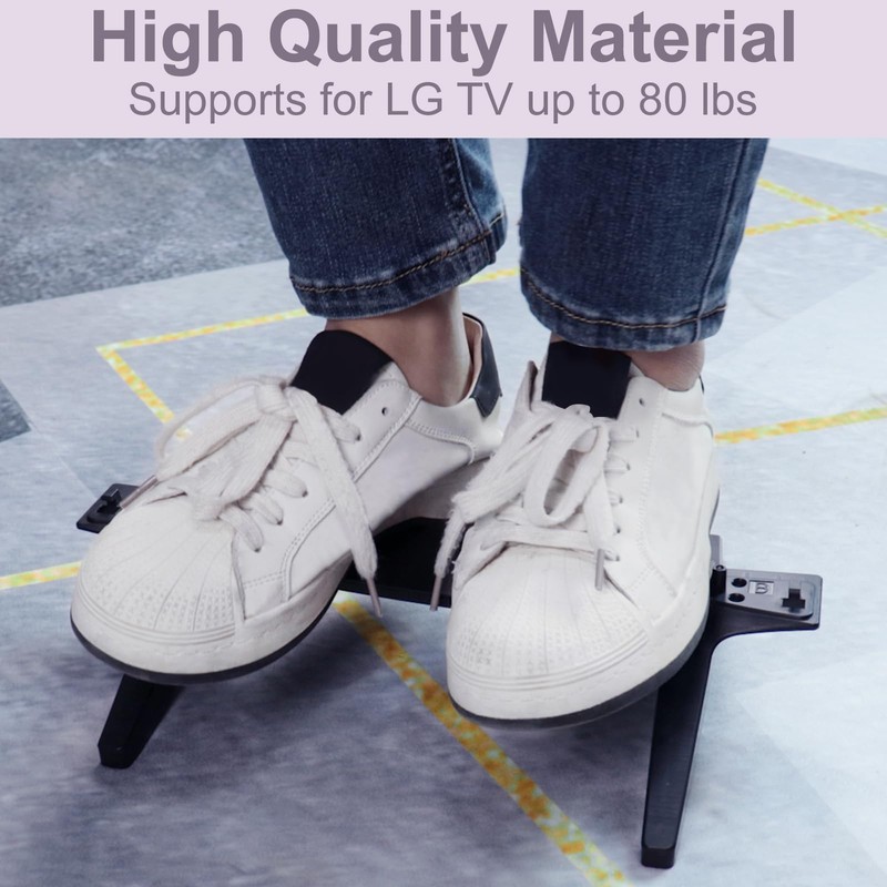 - Updated Version: Thicker and bigger, TV stand for LG TV stand legs is using high-quality ABS materials, ensuring durability and longevity. Provide a safe and stable platform for your TV. With its sturdy construction, this TV stand is capable of supporting TVs weighing up to 80 lbs, providing ample strength.