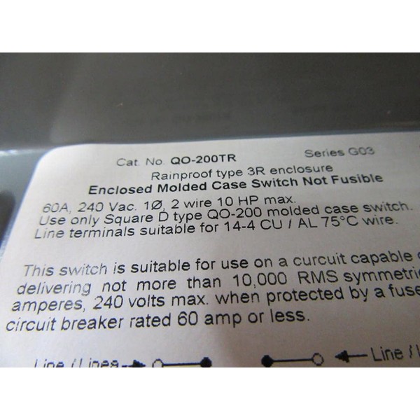 - Price For: Each Standards: UL Listed Voltage: 240VAC Contact Form: 2PST Short Circuit Protection: None NEMA Enclosure Type: 3R Max. HP @ 240V: 10 HP Receptacle Type: No Receptacle Included Item: Air Conditioning Disconnect Switch Number of Wires: 2 Phase: 1 Fusible / Nonfusible: Nonfusible Number of Poles: 2 Amps AC: 60 Duty: General Depth: 3-29/32"