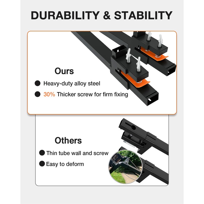 - Heavy Duty Design: Built to support up to 4000 lbs, these 60" pallet forks are perfect for heavy lifting and transporting materials with ease.