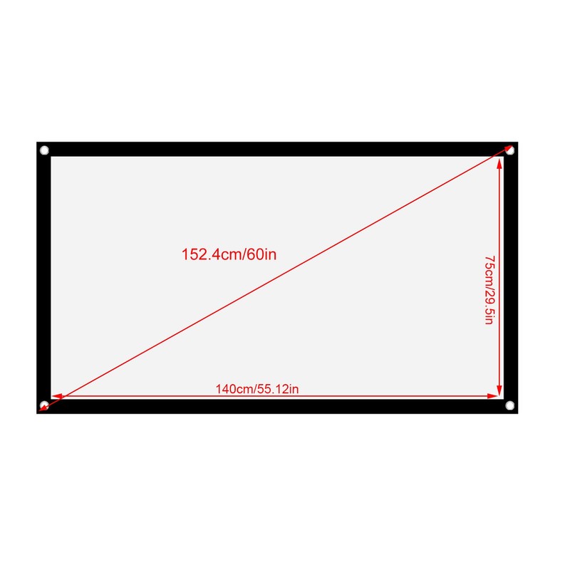 60 Inch Projection, 16:9 Thicken Portable Non Crease Soft White Polyester Projector Curtain Projection Screen (60inch)
