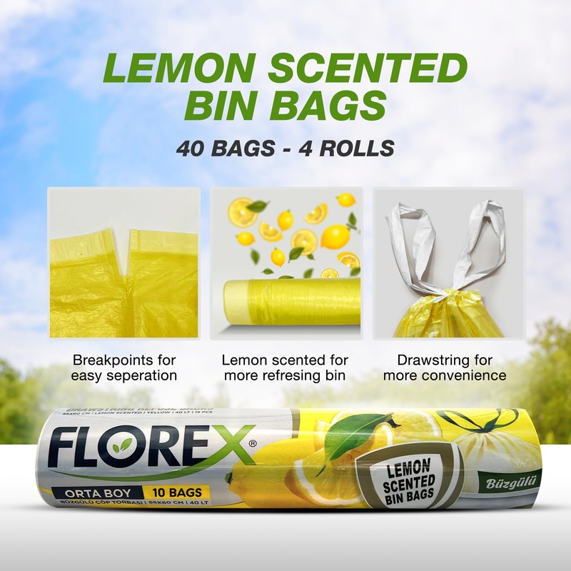 - Leaves Your Garbage Can Smelling Great - Our subtle, fresh Lemon Scented Bin Bags make cleaning enjoyable; with drawstring for easy and secure closure while disposing of your trash.