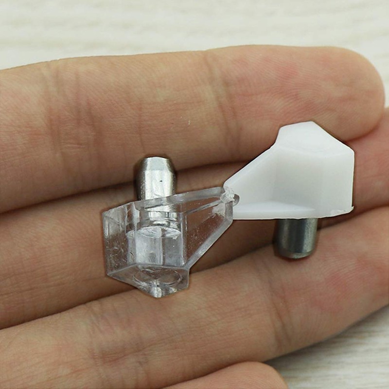 60 Pieces 5mm Shelf Pins Plastic Shelf Support Pegs with Metal Pin Shelf Holder Pins Cabinet Shelf Clips for Kitchen Cabinet Furniture Book Shelves, White