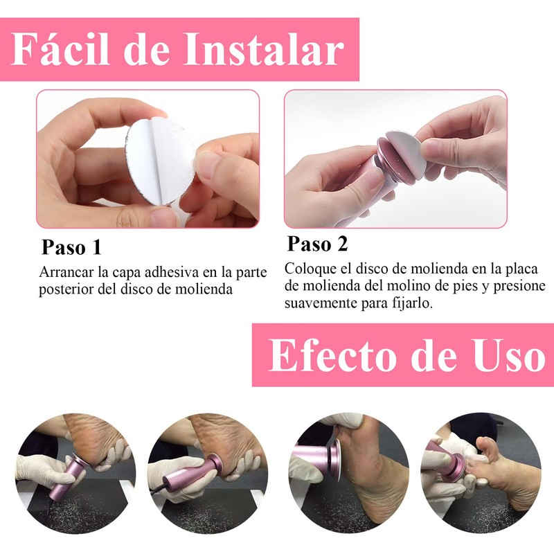 Estos discos son altamente efectivos para eliminar callos y piel dura de los pies de manera rápida y eficiente. Están fabricados con materiales de alta calidad, lo que los hace duraderos y resistentes al desgaste, para que puedas confiar en su rendimiento.