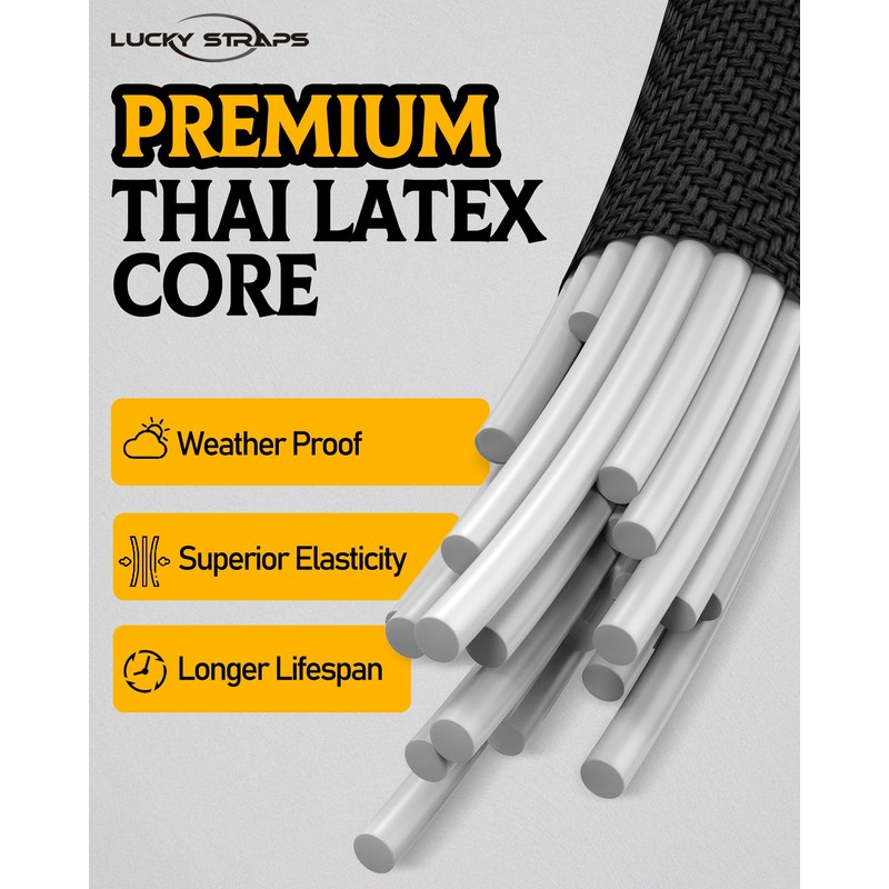 - THE MOST HEAVY DUTY CARABINER BUNGEE CORDS ON THE MARKET – LUCKY STRAPS proudly introduces the market's first heavy-duty carabiner bungee cords, leading the industry with over 170,000+ sold! Standard carabiner bungee cords max out at 78 lbs, while ours boast a true 190 lbs break strength. Unlike flimsy imitations that break or slip, our upgraded locking design keeps the cord securely in place for ultimate reliability.