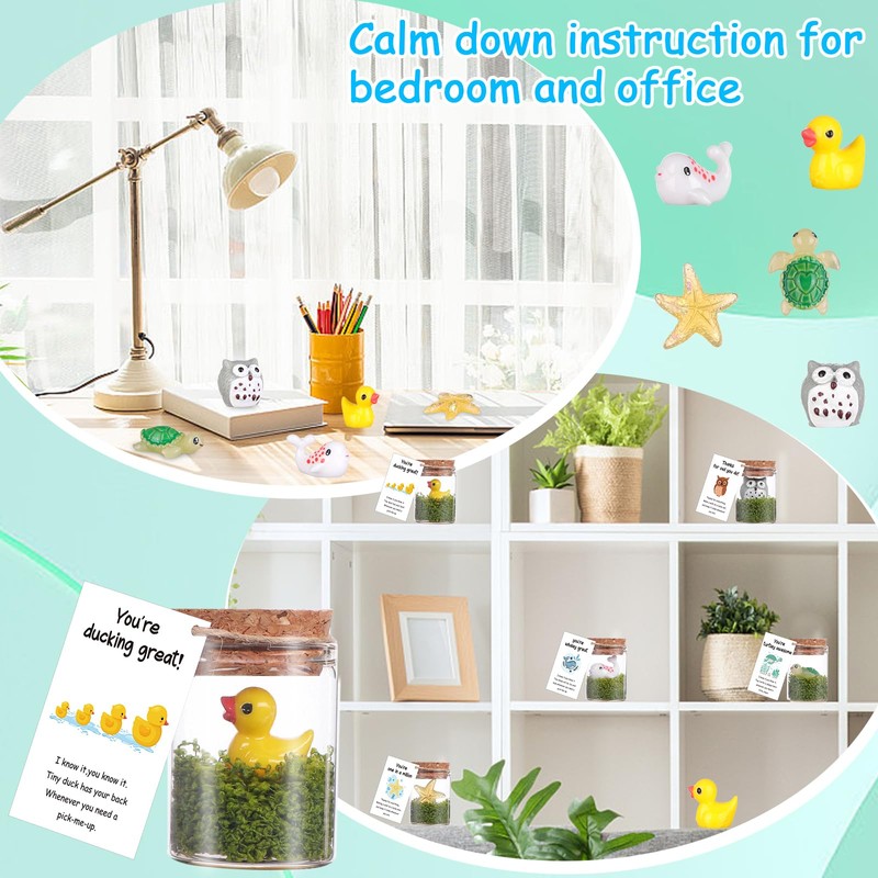 - Quality Material: The animal accessories are made of premium resin material, waterproof, and not easy to fade; the note card is made of double copper paper, sturdy and reliable; the cork glass bottle is made of glass, delicate and clear; our encouragement gifts ensure durability and an enjoyable tactile experience