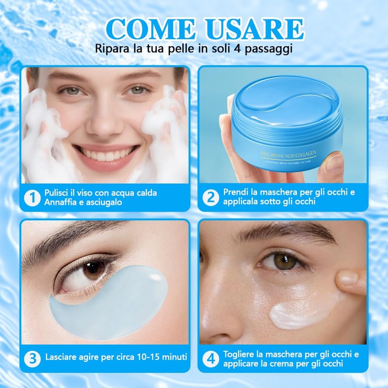 60 Stück Augen-Patches, Kollagen mit Hyaluronsäure, feuchtigkeitsspendende Augenkontur, Entfernung von Augenringen und Taschen, Anti-Falten und Augenringe