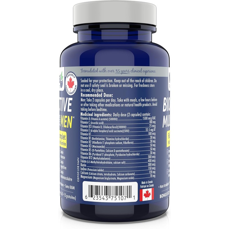 60 vcaps Bioactive Multi for Men, Full Spectrum, Multivitamin Formula, Made in Canada (60 vcaps)