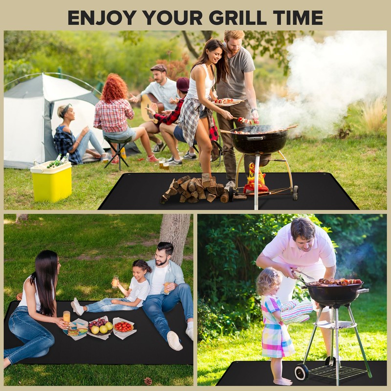 - Easywave Grill Mat: Measuring 60 x 40 inches, this grill mat Protects the area under the grill from heat and fire and collecting any splatters and food stains, it keeps the environment hygienic and reduces the burden of cleaning and enjoying your time outdoors. It's the ultimate solution for protecting your wooden patio from messy grease spills and flare-ups