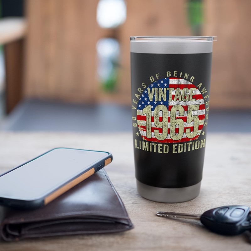 60 Years Old Gifts Vintage 1965 60th Birthday American Flag Stainless Steel Insulated Tumbler