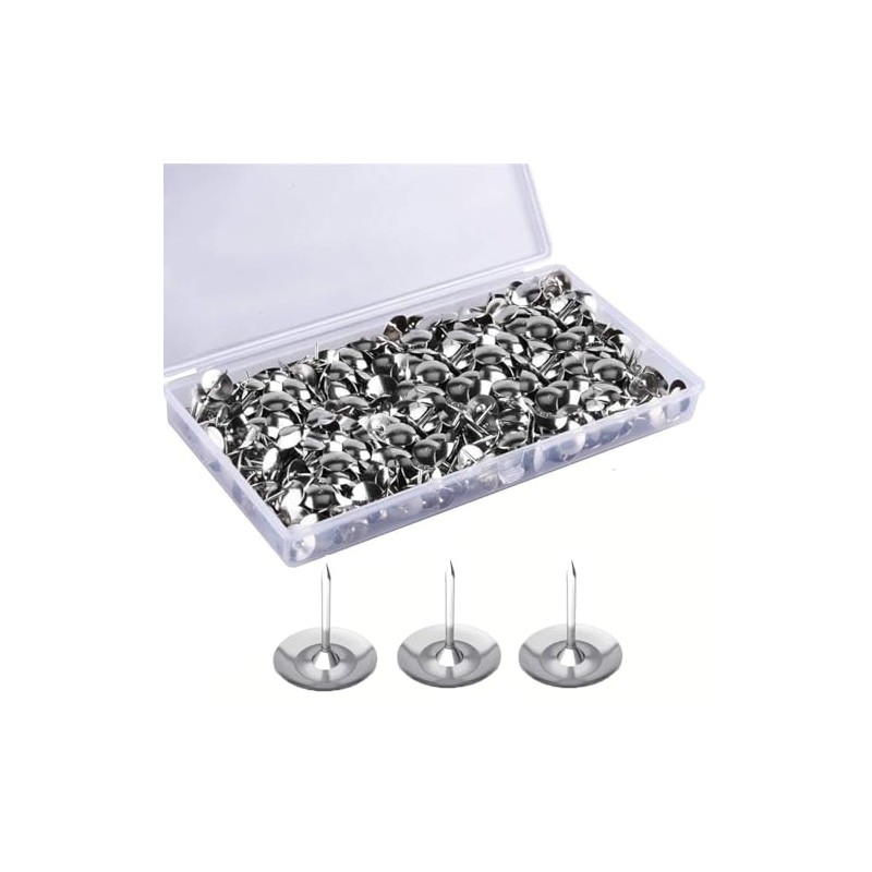<p> The flat head of the push pins allows them to be used on different surfaces such as cork, corkboard, posterboard, foam, cloth, bulletin boards, maps, calendars, and more. The package includes a total of 600 silver thumbtacks with a flat head. They come packed in a transparent box for easy storage and use.</p>