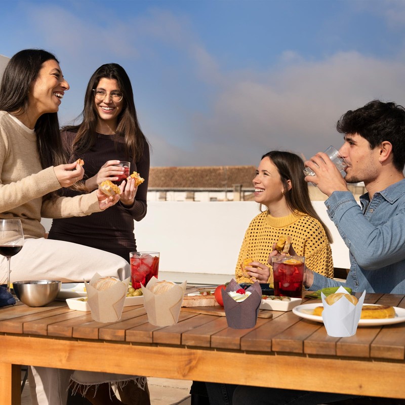 - Proper Size: the diameter of liner is about 2 inches at the bottom, and the height is about 2.1 to 3.2 inches, the capacity is about 3 ounces, the tulip muffin liners are suitable for standard muffins or cupcakes
