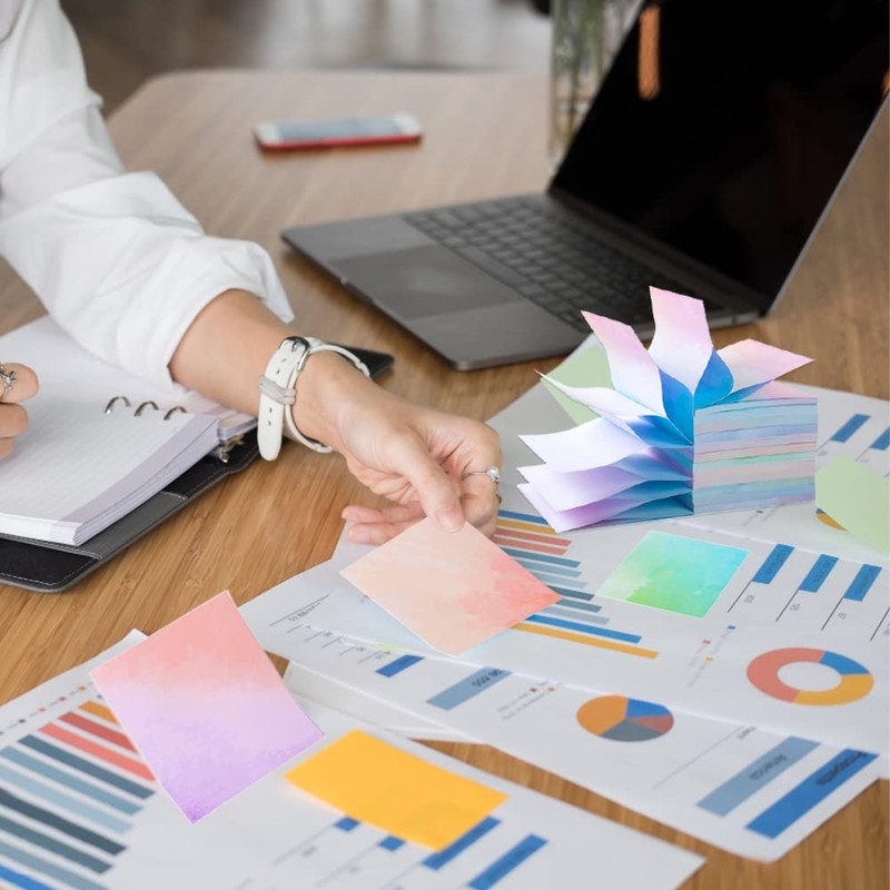 600 Pieces Pop up Sticky Notes Watercolor Theme Self Stick Pastel Notes Pads 3x3 Pretty Adhesive Sticky Notes Pads Refills Easy to Post for Home, Office, Notebook Supplies