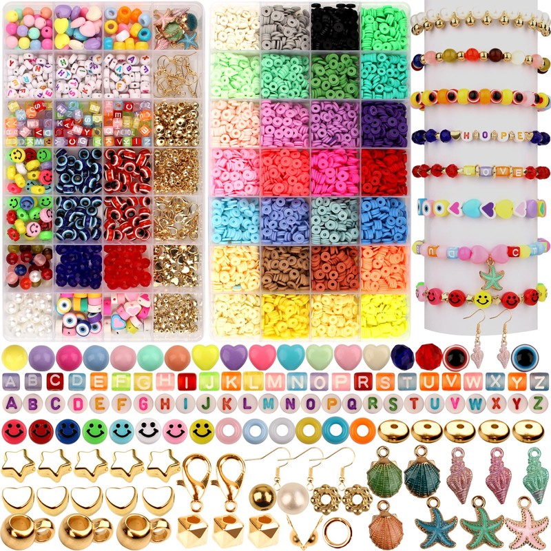 6000+pcs Polymer Clay Beads Smile Beads Crystal Beads Letter Beads for Making Jewellery for Bracelet Making Kit, 2 Boxes