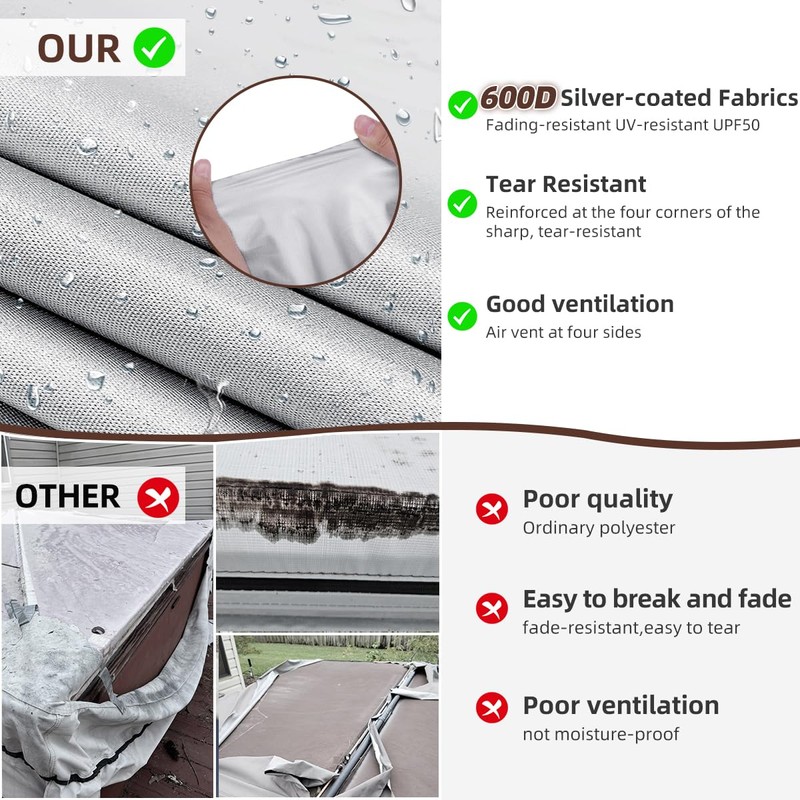 - [LONG-LASTING DURABILITY]: The fabric in every corner of the bathtub cover has been reinforced, making it more tear resistant compared to other bathtub covers. Each corner is reinforced with black ribbons and triangles. These design elements ensure that the lid can long-term exposure to the outdoors.