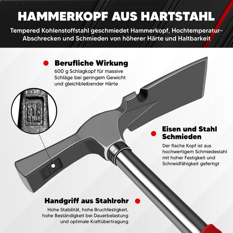 - 600g Steel Pipe Handle B-Type Brick Hammer