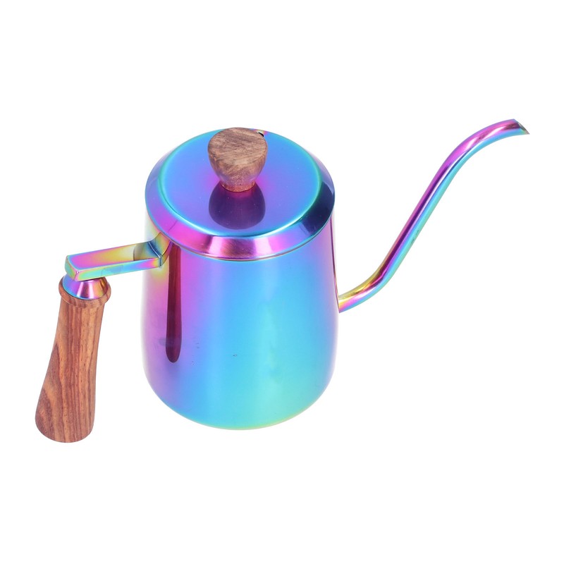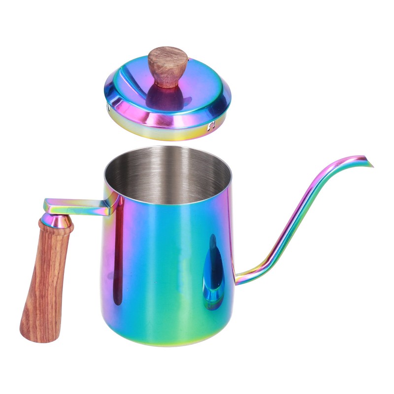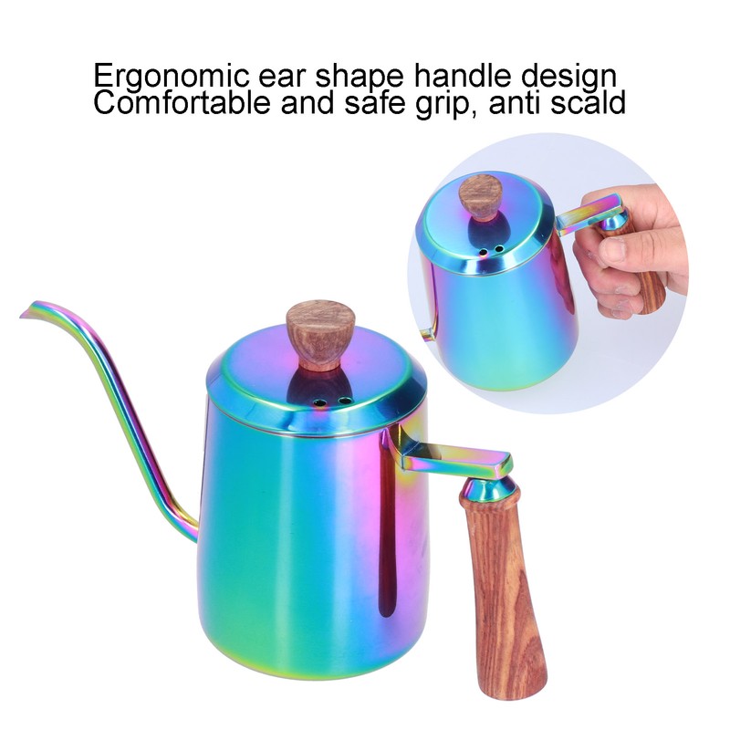 600ml Stainless Steel Manual Coffee Pot Long Narrow Spout Pour Over Kettle with Wooden HandleColorful