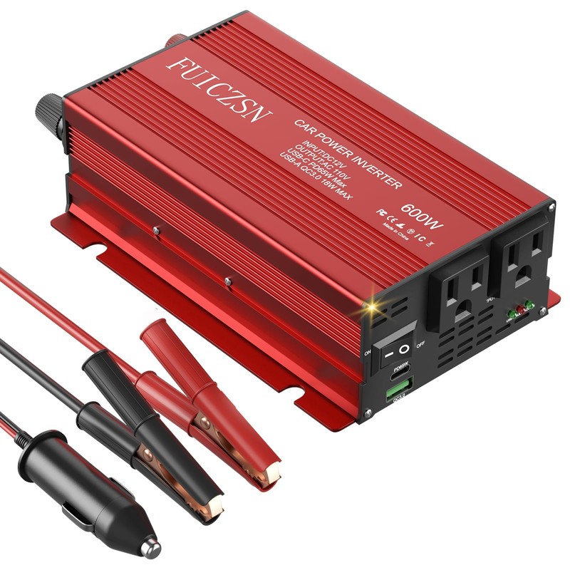 - 【600W Car Power Inverter】Our power inverter produces 600 Watts continuous DC to AC power and 800 Watts instantons power, with dual 110V AC power sockets,1 PD 65W USB-C port and 1 QC 18W USB-A port.Great for charging string lights, laptop, breast pump, CPAP machine, nebulizer, game console, kindle, TV, DVD players, lights, iPad, and other electronic devices.