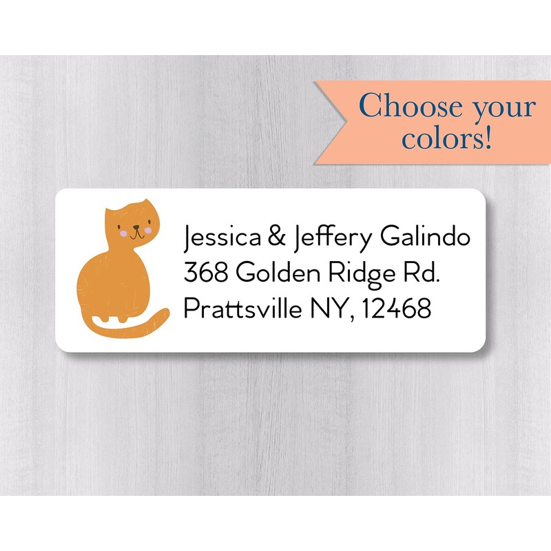 60ct - Cat Return Address Labels/Stickers (#565-WH)