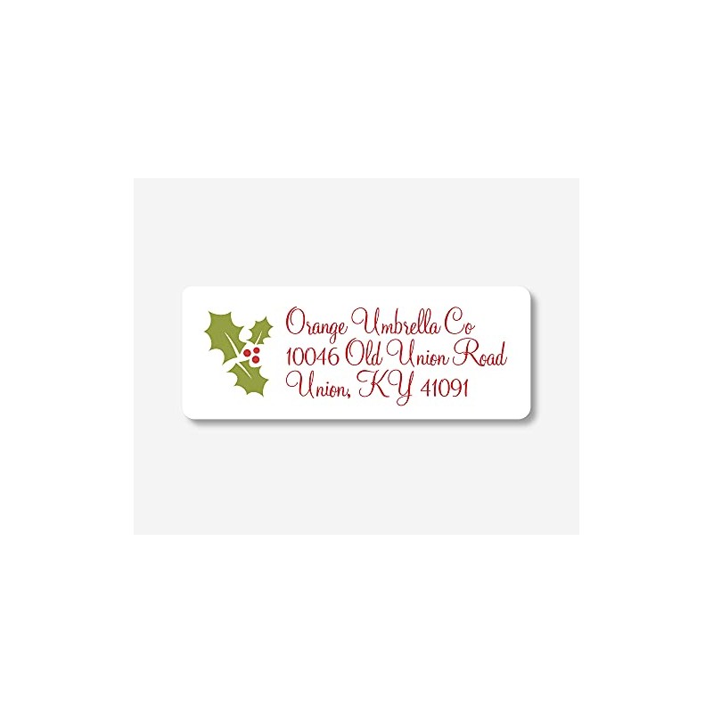 60ct - Christmas Return Address Labels, Holly Return Address Stickers, Holiday Address Stickers (#392-WH)