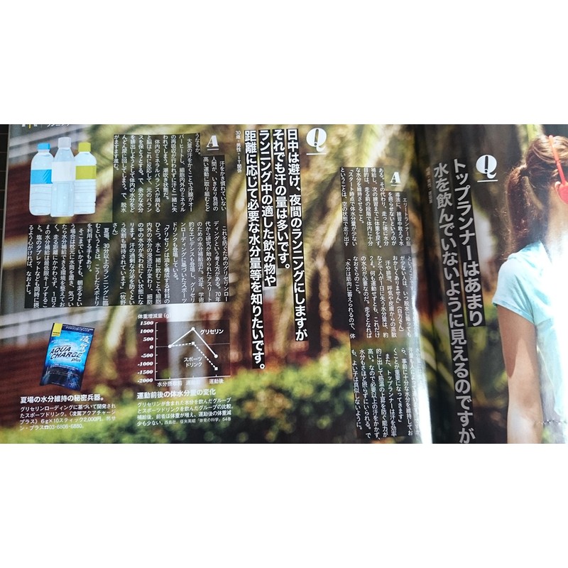 - マラソンやテニス、サッカーなどのスポーツ時の水分補給効果を長期化させるグリセリンローディング法を使用