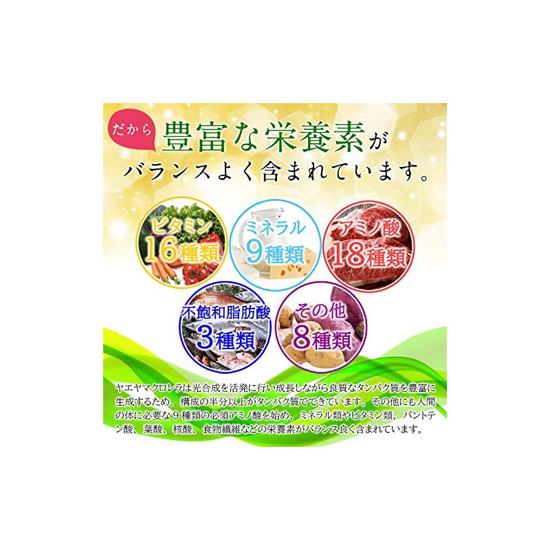 - たんぱく質65%以上、クロロフィル3.0%以上の厳選されたヤエヤマクロレラ粉末だけを使用