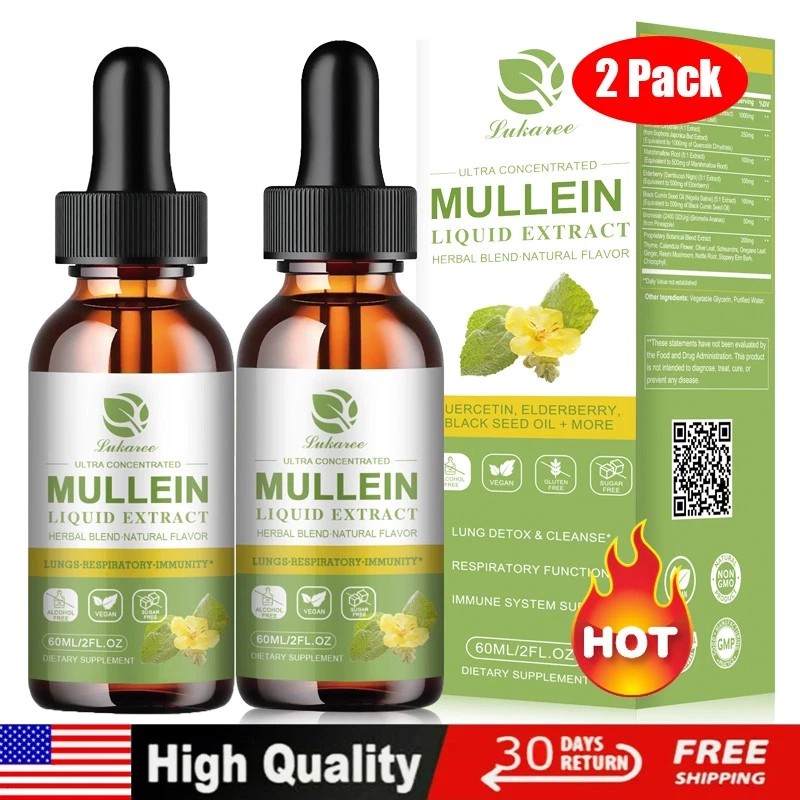 60ML Mullein Leaf Extract Natural Drops Healthy Lung Cleanse Respiratory 2 Pack