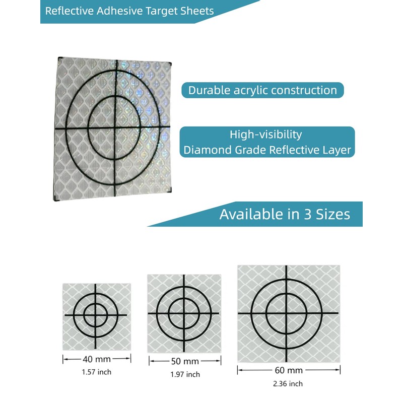 60PCS 40 * 40mm White Reflective Tape Survey Targets Reflective Adhesive Target Sheets for Total Stations Laser Target Sheet