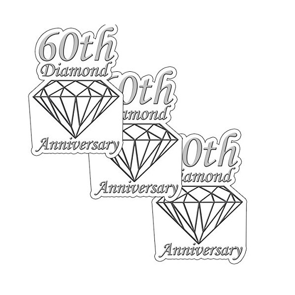 Sheet of 24 Stickers -60th Anniversary Diamond Sticker - High quality stickers - great for favors, sealing envelopes and sticker fun. Individual sticker measures 1.85 inches.