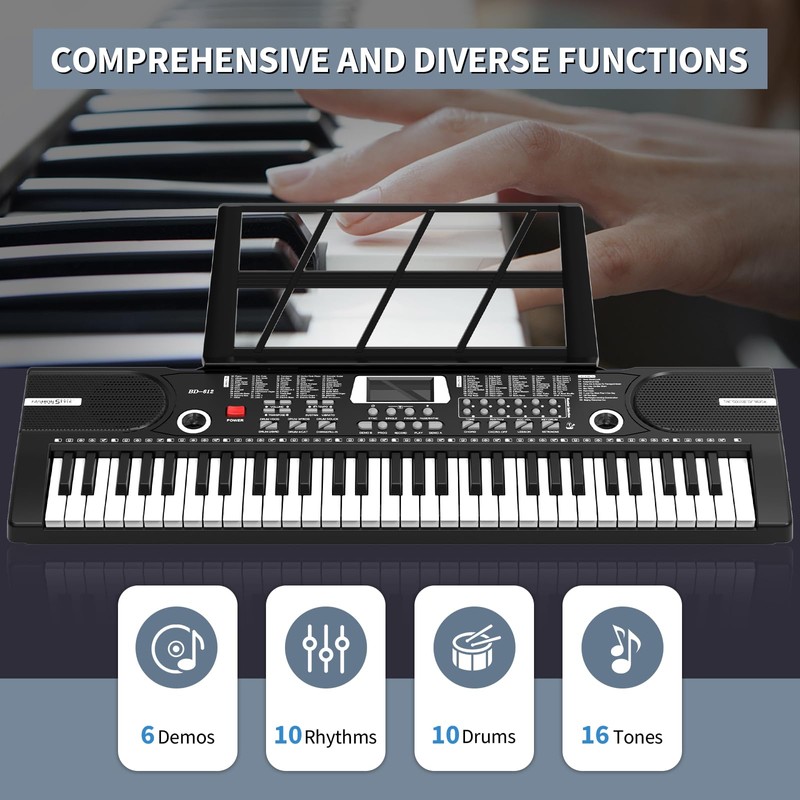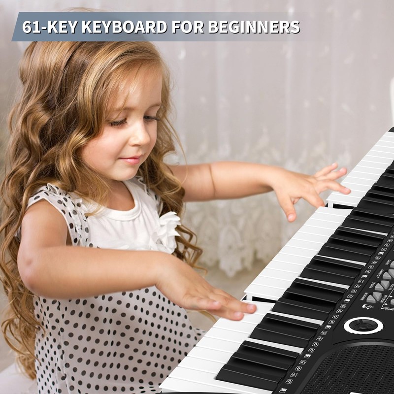 - ♫【Multifunctional 61 key piano】The electric keyboard piano is equipped with 61 keys, a variety of instrument sounds and a variety of drum percussion accompaniment, 6 demonstration songs, 16 instrument tones, electric piano can play multiple notes of chords, different intelligent keys can achieve delay, vibrato, recording, programming and more functions