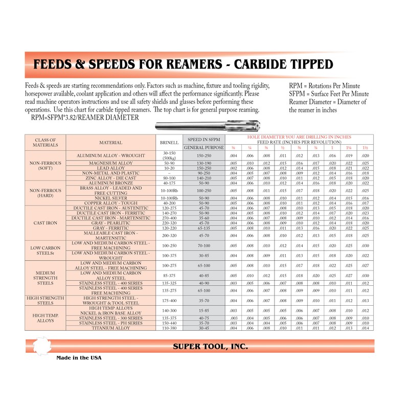 - 0.6445" diameter (+.0003" /-0" ) carbide tipped chucking reamer