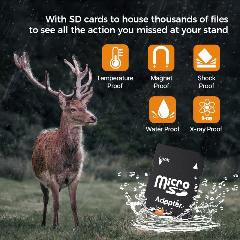 • Designed for the outdoors, this SD card is built to withstand extreme temperatures, moisture, and dust, making it the perfect companion for your hunting adventures