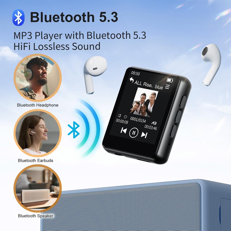 - MP3 player with Bluetooth 5.3: MP3 player with Bluetooth 5.3 of the latest version, ensure a super stable and fast connection via your Bluetooth headset/speaker. Bluetooth player with built-in speakers, so you can enjoy your music wirelessly anywhere. Note: not for connecting to the Bluetooth of the phone.