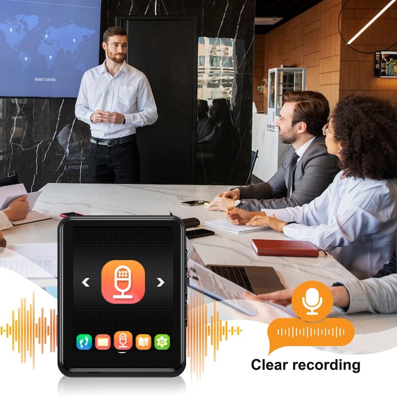 - Compact & Lightweight & Full Touch Screen: This mini Bluetooth MP3 player has a 1.8 inch touch screen, mirror and scratch-resistant zinc alloy design. It can control and touch the full screen, which simplifies the operation of the MP3 player. Lightweight and elegant, it is the ideal companion for sports, running and fitness.
