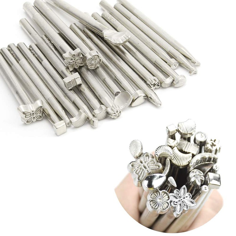 - -Material: Hammer head made of strengthen nylon and the handle manly made of solid wood. The rotating knife is made of alloy steel, which is very nice and sharp. Leather Workingembossing tools are made of alloy steel, have 20 different printings, make your leather product more beatiful and unique.The tracing pen is made of wooden and steel. These numbers stamps and alphabet letters stamps are made of extremely strong, heavy-duty alloy steel for powerful impact and long service life.
