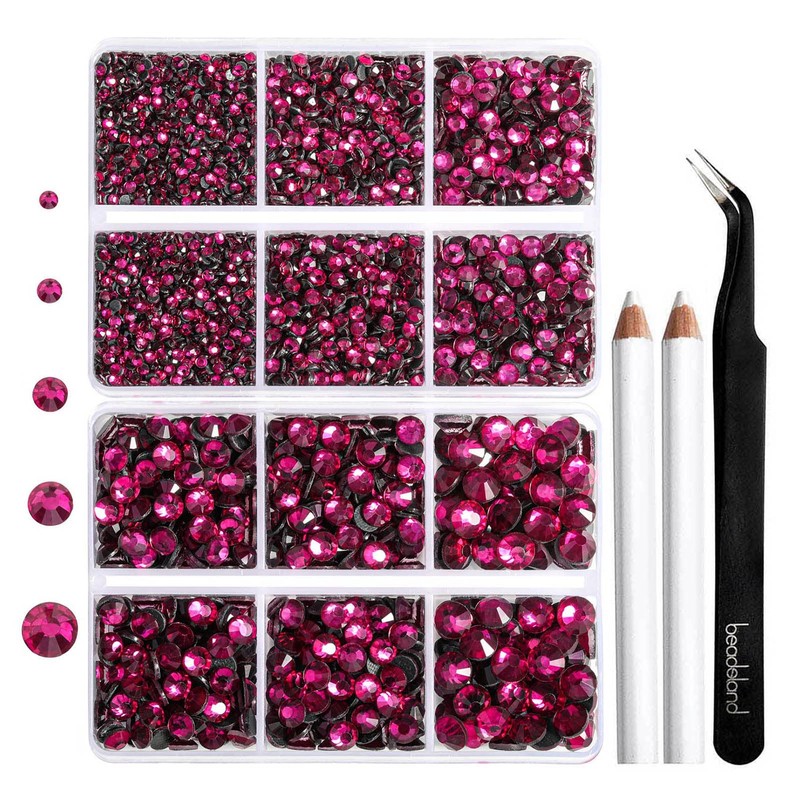 - Pack of 2 boxes, total 6736 pieces hot pink hotfix rhinestones in 5 sizes, 1 tweezer and 2 wax pencils for rhinestones. A cost-effective choice, suitable for beginners to practice