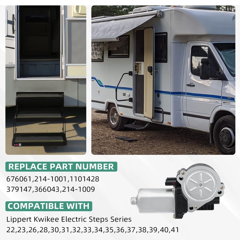 - 【RV Step Motor Fitment】Compatible With kwikee 214-1001 Motor,Lippert Components 1101428(For use on Kwikee single steps series 26, 28,30,31,33,35,36,37,38 and Series 39;For use on Kwikee double steps series 22, 32,34,40,41 and Series Platinum;For use on Kwikee triple steps series 23.)