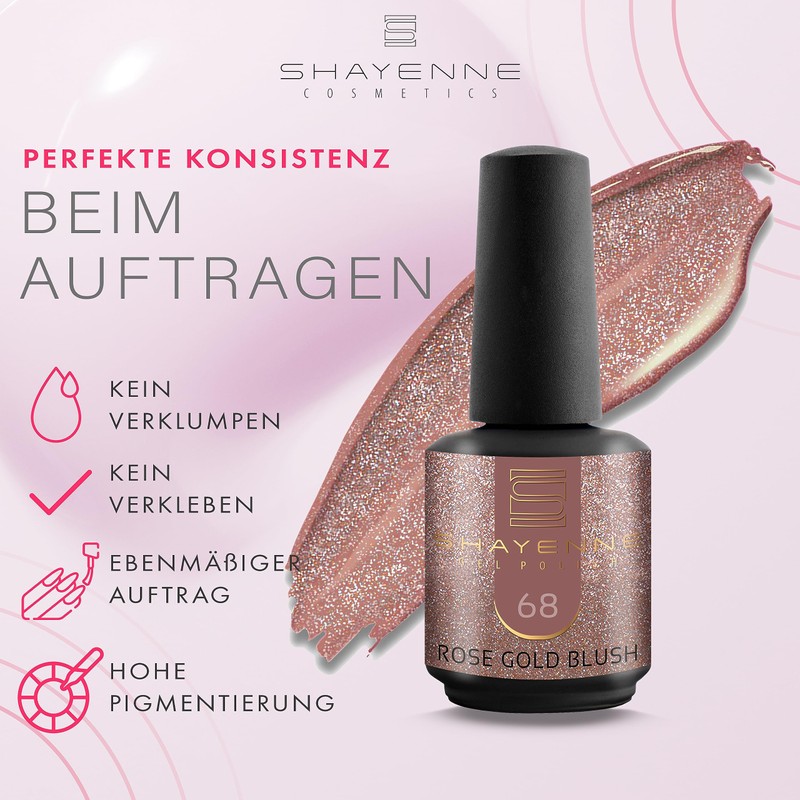 68 Rose Gold Blush Gold - Shayenne UV Gel Nagellack 15ml - Langhaltend, Hochglanz, Für UV/LED Lampe, Maniküre & Pediküre - Profi-Qualität - Made in Germany