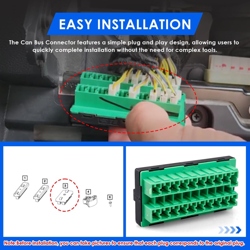 - [Easy-Installation]: This Can Bus connectors can be used as direct replacements for original vehicle parts, saving time and installation costs. They also feature a simple plug-and-play design, allowing for quick installation without complex tools or soldering. Before installation, you can take a photo to ensure each connector matches the original manufacturer's connector.