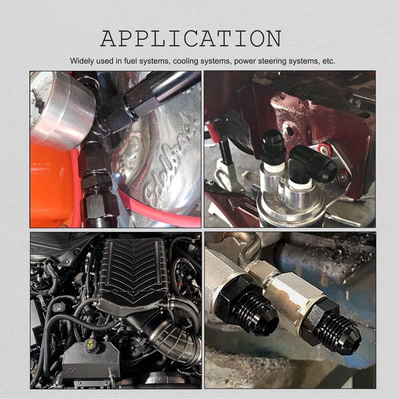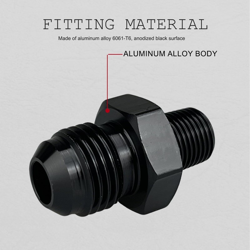 6AN Male Flare to 1/8" NPT Pipe Fitting Adapter Aluminum Straight Black, Pack of 4