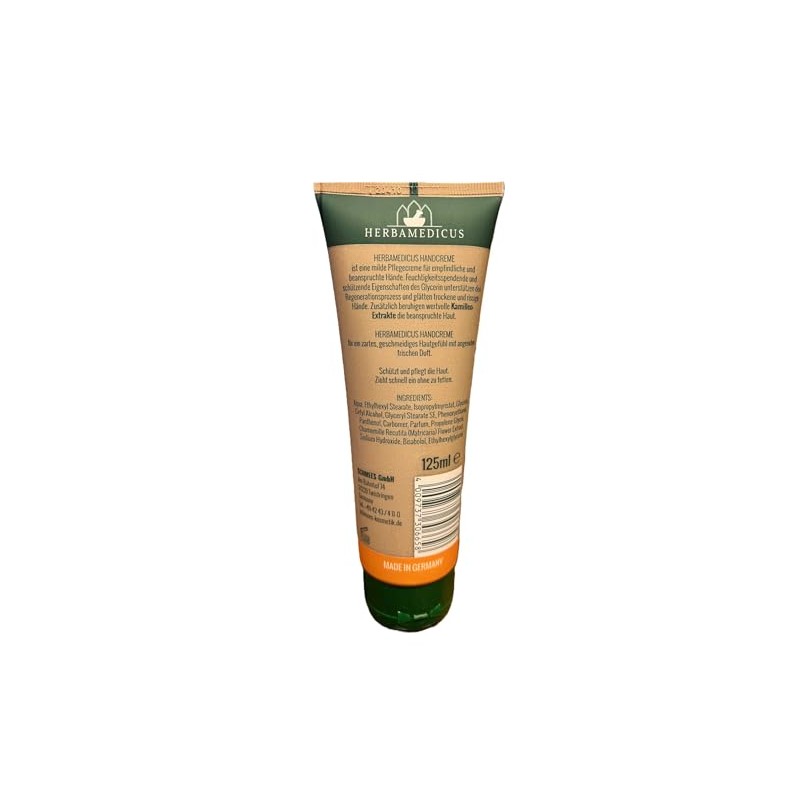 - Herbamedicus Handcreme für ein zartes, geschmeidiges Hautgefühl mit angenehm frischem Duft. Schützt und pflegt die Haut. Zieht schnell ein ohne zu fetten.