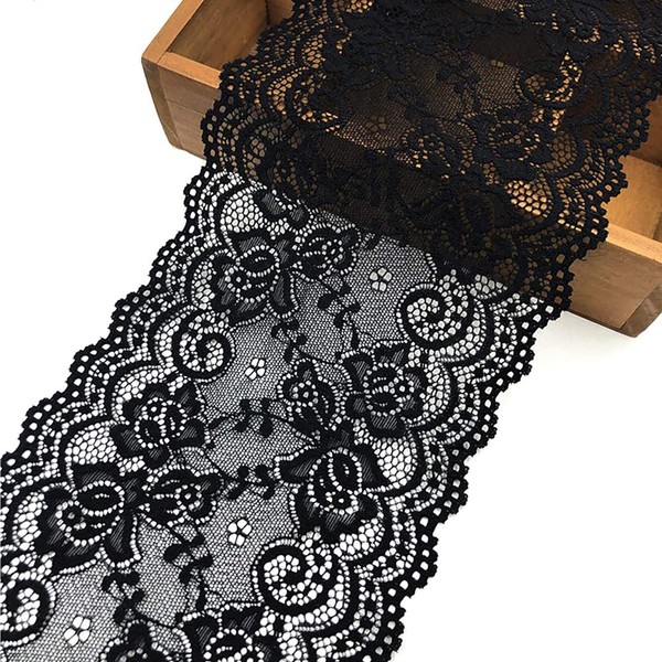 6in*5Yard Soft & Stretch Black Lace Roll Runner for Wedding Clothes or DIY Craft Decoration