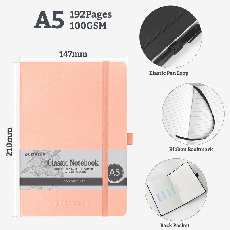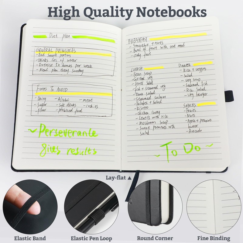 • A5 Size & Hardcover: 5.7*8.3 inch A5 size is perfect for carrying around; Hard cover with round corner design can easily protect inner pages from curled, and these simple covers without pattern fits lots of occasions like travel, home, workplace, school, etc.