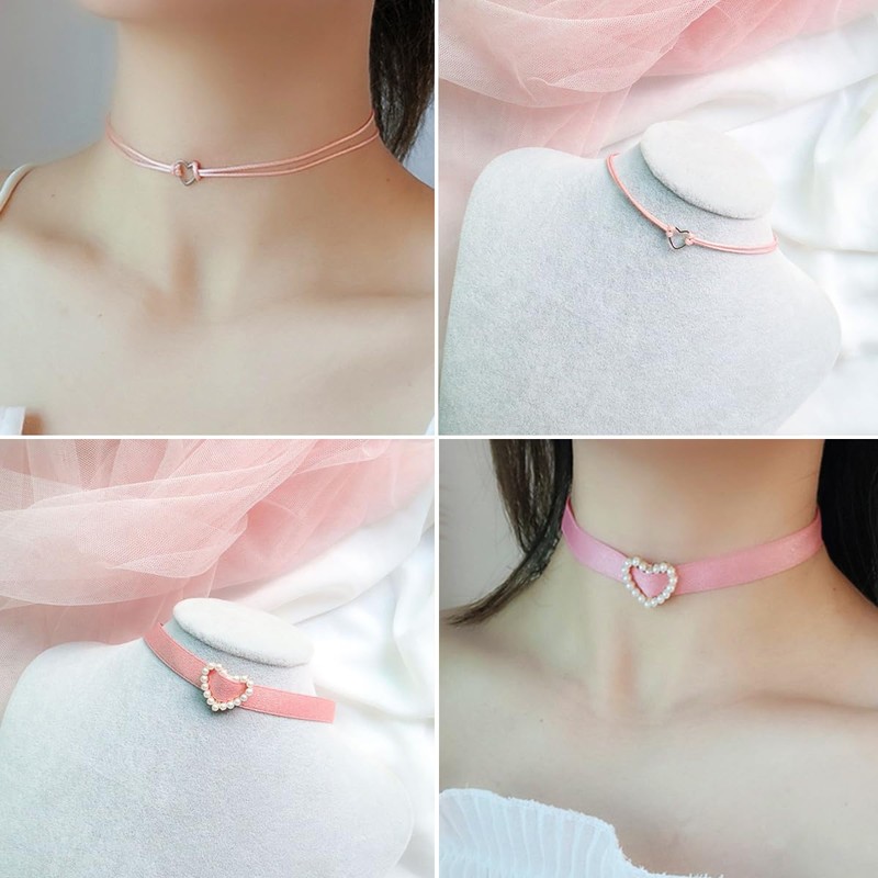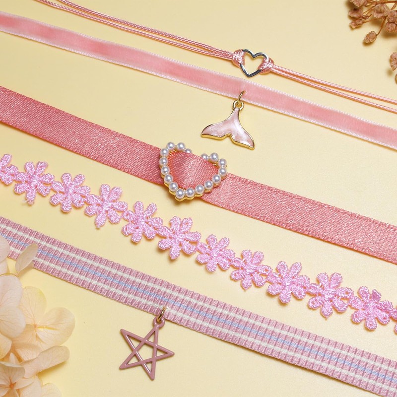 6PC Color Chokers Set For Women Heart Pearl Choker Necklaces Flower Pendant Velvet Cute Choker Necklace Classic Tattoo Lace Chokers (HotPink)