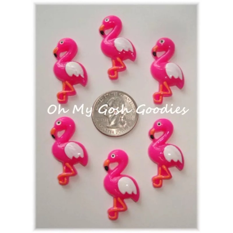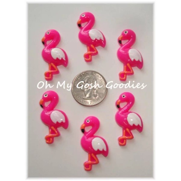 6PC PINK FLAMINGO FLUTTER RARE EDITION TROPICAL FLATBACK RESIN HAIRBOW CENTER