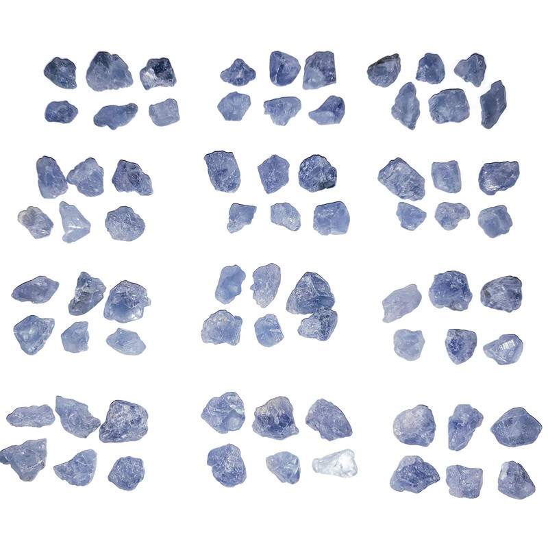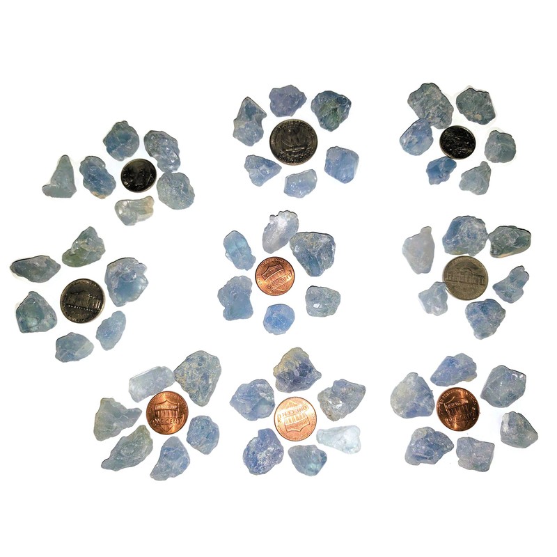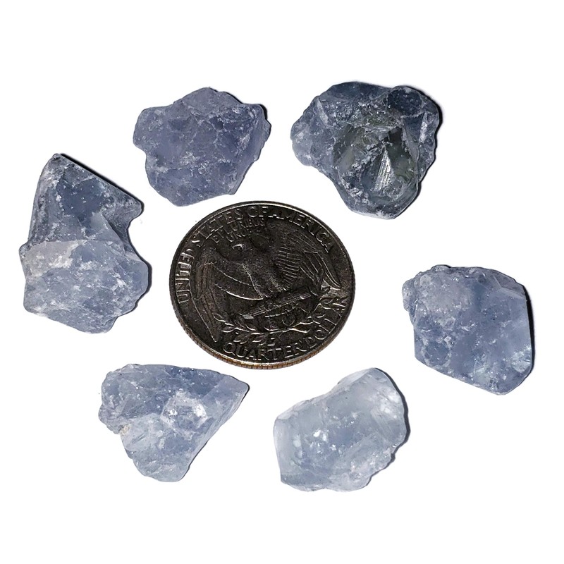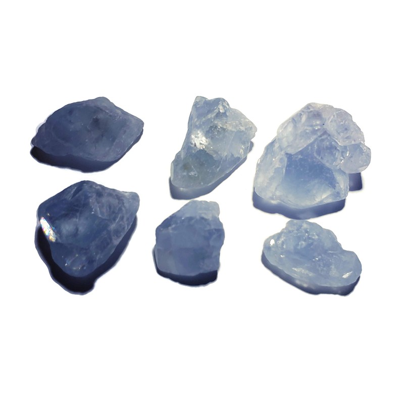 6pc Set Raw Celestite Celestine Small Rough Naturally Semi-Faceted & Semi-Translucent Healing Crystal Gemstone Specimen From Madagascar for Wire Wrapping, Meditation, & Metaphysical Uses, Small, Raw Crystals