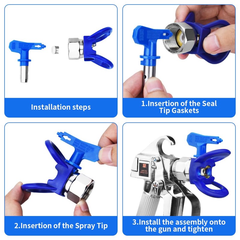 • 【Easy Installation】 Installing our paint spray tip is a breeze, requiring no tools. Simply use the paint spray tip to seal the nozzle into the protective base, then insert the spray head into the protective base and rotate to complete the installation.